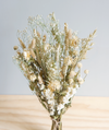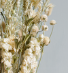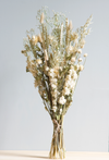 This arrangement brings together golden Wheat and soft Oat for an earthy foundation, while airy Gypsophila and crisp White delphinium add light and brightness. Warm tones from Gomphrena and Helichrysum infuse the bouquet with gentle colour, and sculptural Largus and Nigella orientalis lend striking form and detail.